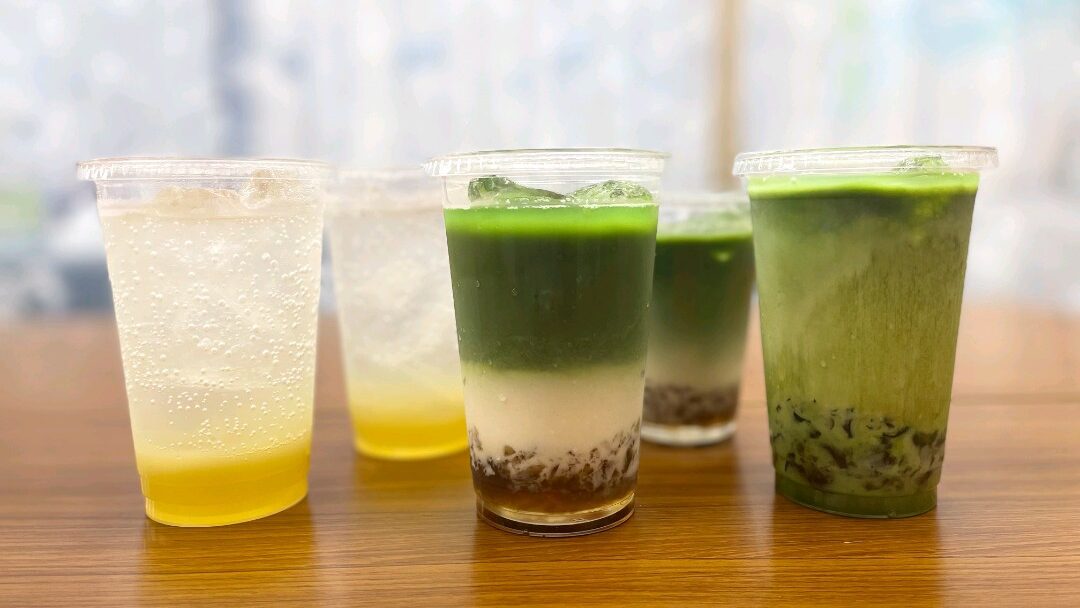 【シークワーサーソーダ】【黒糖ゼリー入り抹茶オレ】です